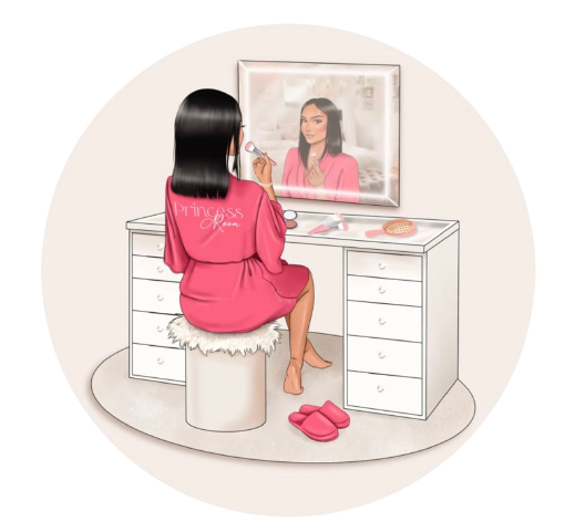 Chaque coiffeuse, chaque miroir, chaque détail a été imaginé pour recréer cette atmosphère unique : celle d’une chambre de princesse moderne, où la préparation devient un moment de douceur et d’amour de soi.